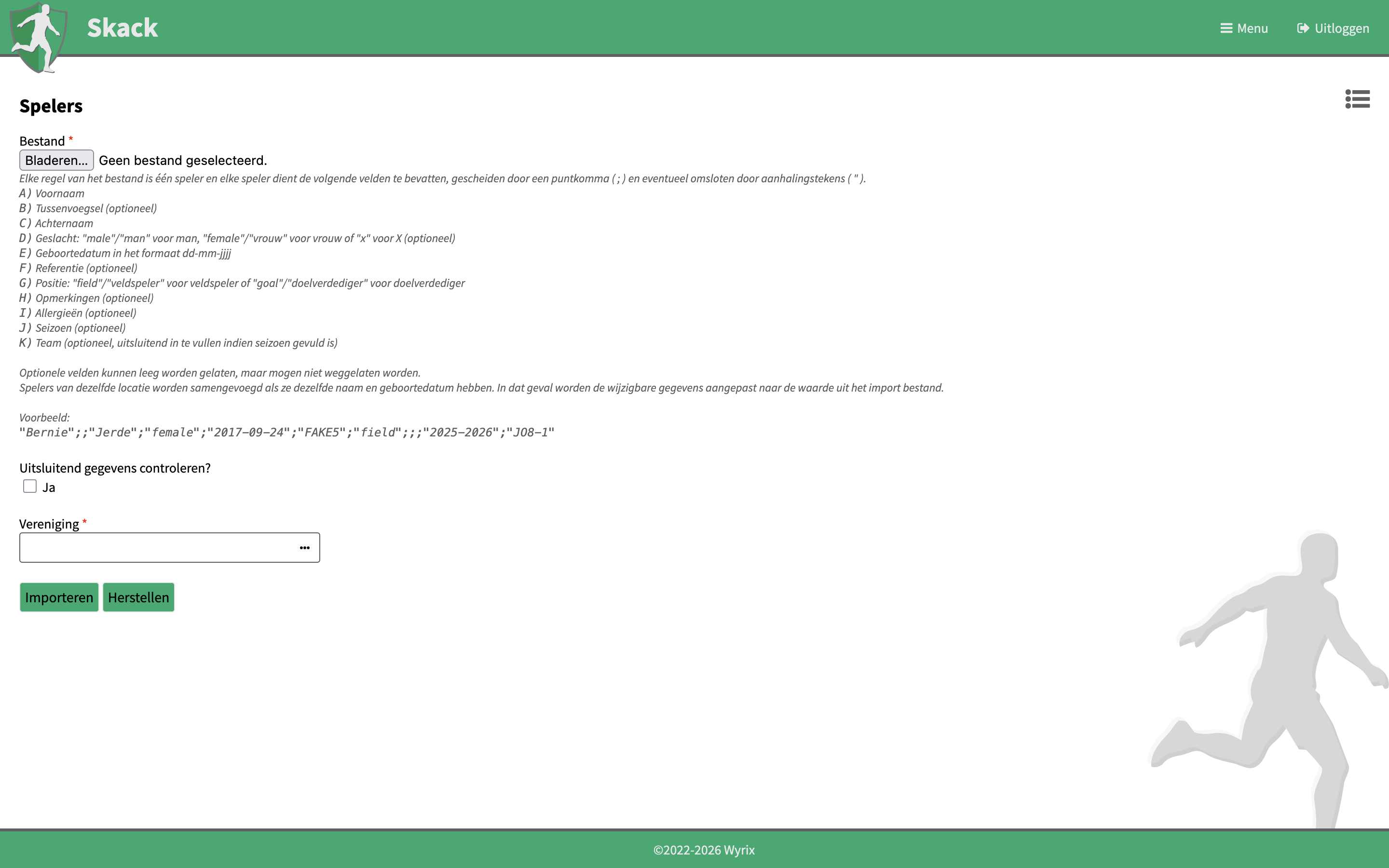 Of kies ervoor om meerdere spelers of kaderleden middels de importeer formulieren toe te voegen. Hiermee importeer je in een handomdraai jouw spelers of kaderleden vanuit bijvoorbeeld CSV of Excel bestanden.
