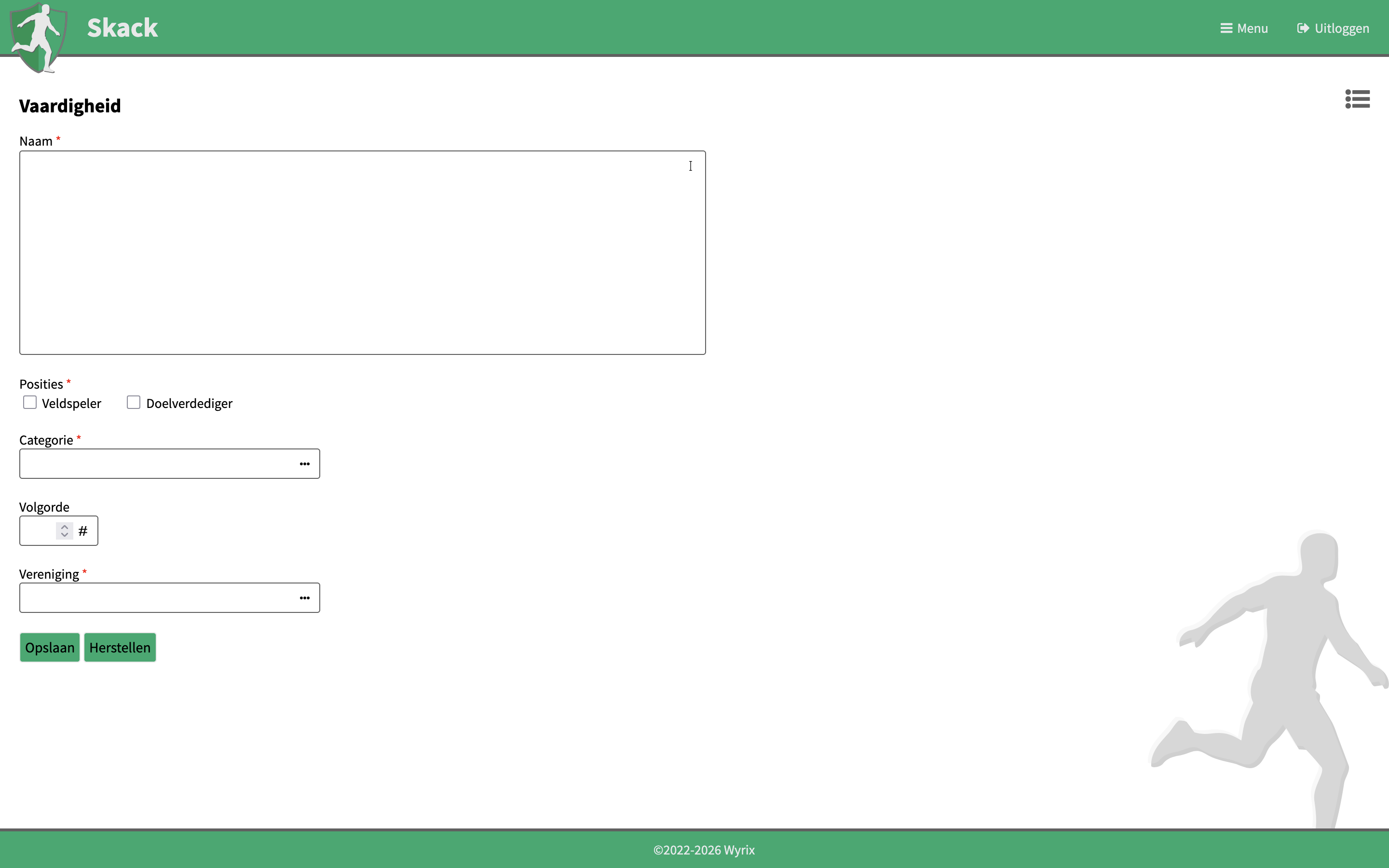 Op welke vaardigheden een speler zal worden beoordeeld bepaal je zelf. Daarbij kunnen vaardigheden ook specifiek voor een bepaalde positie worden aangemerkt. Vaardigheden voor doelverdedigers zullen dus niet gevraagd worden voor veldspelers en vice versa.