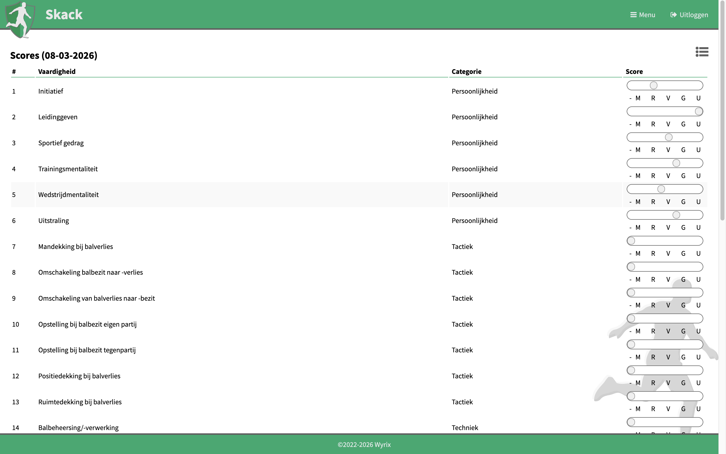 In korte tijd beoordeel je elke speler op basis van de ingestelde vaardigheden.