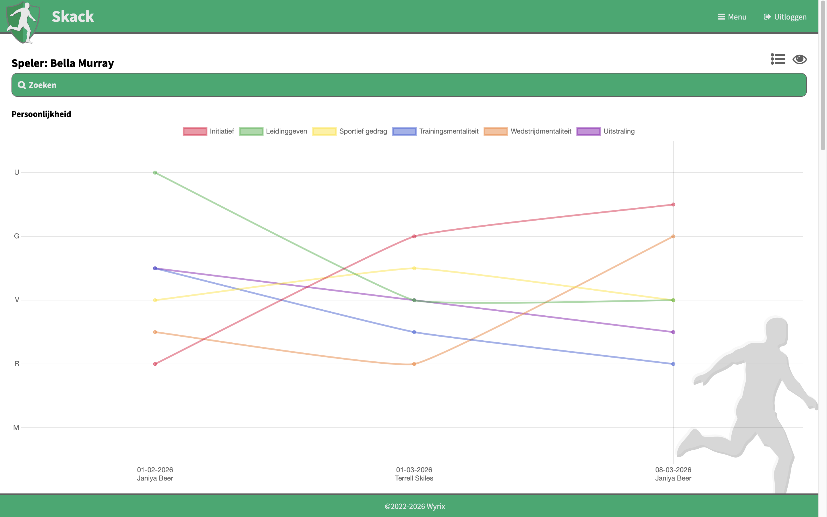 Op basis van de beoordelingen kun je in een grafiek zien hoe de speler het doet over de tijd. Zit er progressie in? Of is het juist een erg wisselvallige speler?